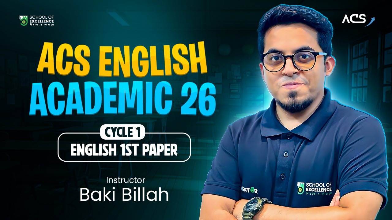 HSC 26 ব্যাচের তোমরা যারা ইংরেজির একাডেমিক পূর্ণাঙ্গ প্রস্তুতির পাশাপাশি একাডেমিক থেকেই এডমিশন প্রস্তুতি গুছিয়ে নিতে চাচ্ছো তাদের জন্য ACS English Academic 26 Batch নিয়ে এসেছি School of Excellence (SoE) এর পক্ষ থেকে।